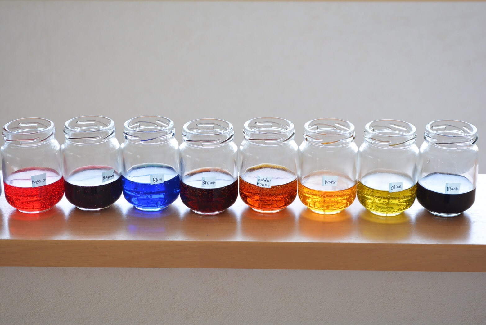 レッド、オレンジ、イエロー、ハニーデュー、ハンターグリーン、ミント、ブルー、ウェッジウッド、マゼンタ、バーガンディー、パープル、ブラウン、ゴールデンハニー、アイボリー、オリーブ、ブラック